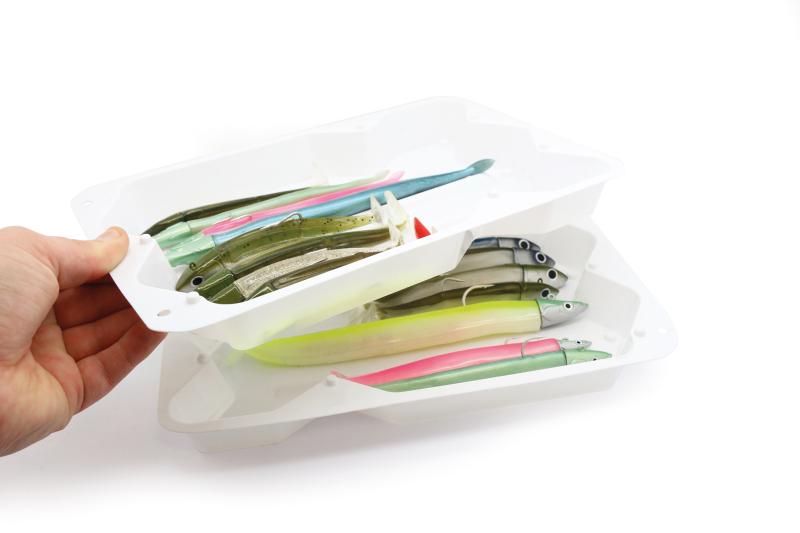 Barquettes empilables, idéales pour ranger vos leurres souples à la maison, comme en bateau.