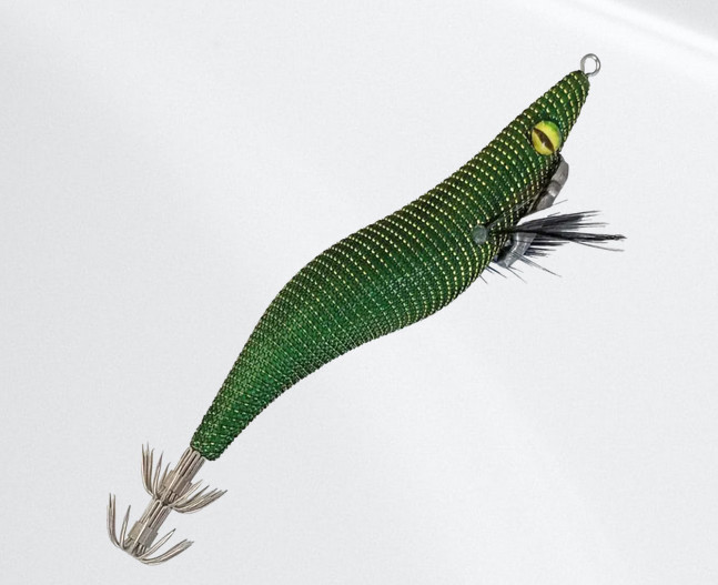 Double panier inox - Revêtement chromashift - Corps phosphorescent - Nageoires plumes - Plomb Hydrodynamique en forme de calamar - Flan à multirésonance - Multibilles - Œil prédateur.