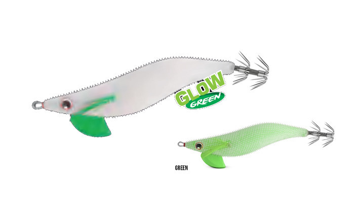 La gamme Rush Egi Rubber Glow, comme son nom l'indique, est conçue pour mettre en valeur la combinaison de couleurs lorsque le leurre est chargé aux UV, accentuant le contraste entre la finition en caoutchouc et les différentes couleurs de phosphorescence.