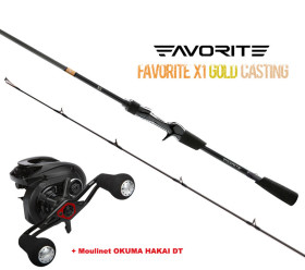 Nous vous proposons ici l'ensemble "Bar d'écume" CASTING avec la Canne Favorite GOLD + le moulinet HAKAI DT OKUMA à -10% sur l'ensemble !