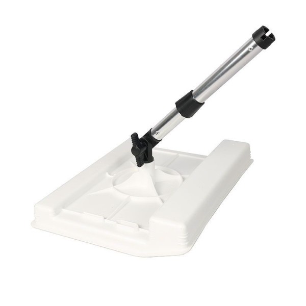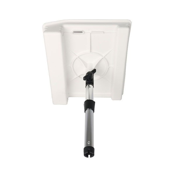 La jonction entre la tablette et la crosse est réglable pour un positionnement horizontal de la tablette quelque soit l'inclinaison du porte-canne dans lequel elle est posée.