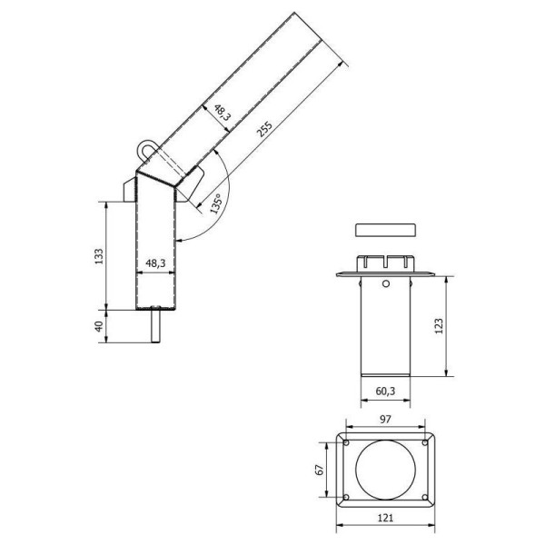 - Socle seul réf 478026 - Fixation plat bord (121 x 90 mm) - Tube de fixation Ø 60.3 x 1.5 mm - Livré avec embout PVC étanche (réf 478070) - Bague en PA6 crantée.