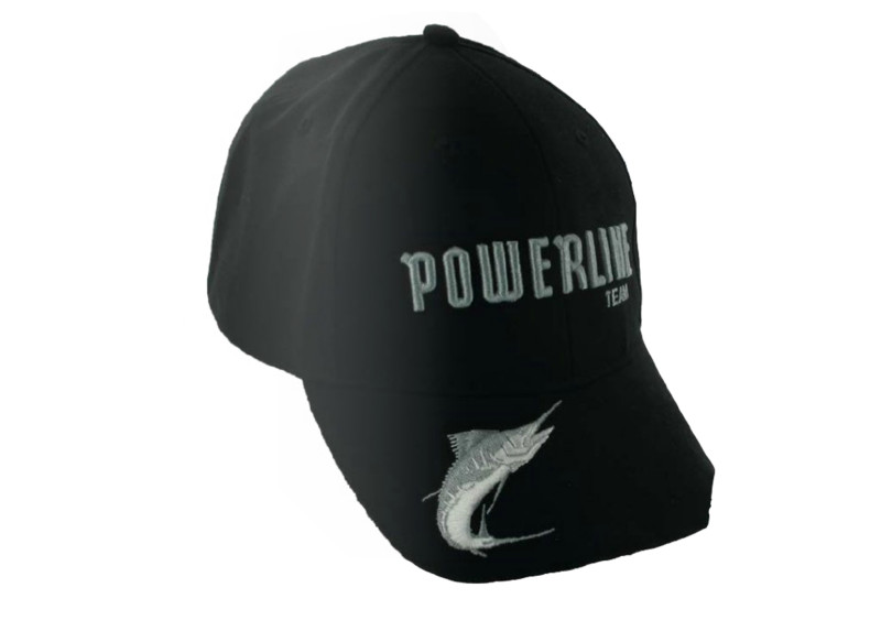 Casquette Powerline Noire avec écriture blanche et logo espadon sur la visière.