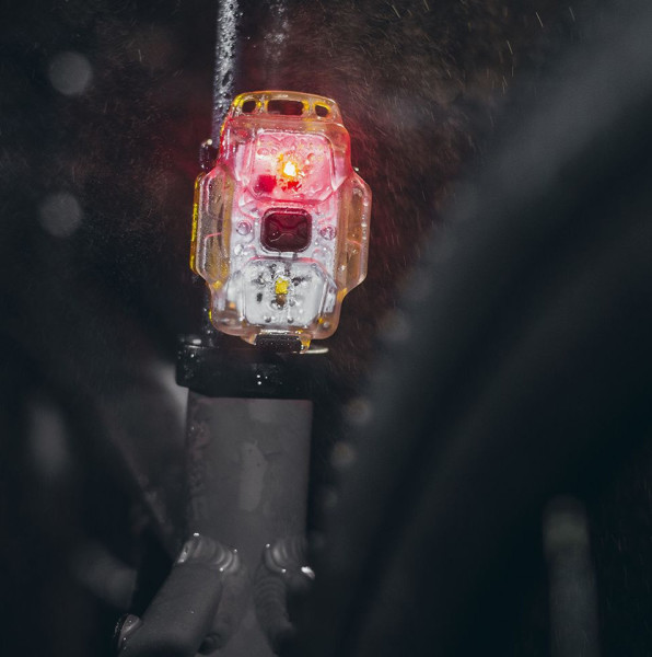 LAMPE POUR VÉLO : Anneaux résistants en silicone pour montage rapide sur un vélo. Lumière blanche constante (3 intensités) et Balise blanc à utiliser comme phare ou feu de navigation. Feu rouge constant (3 intensités) et Balise rouge pour une utilisation à l'arrière d'un vélo.