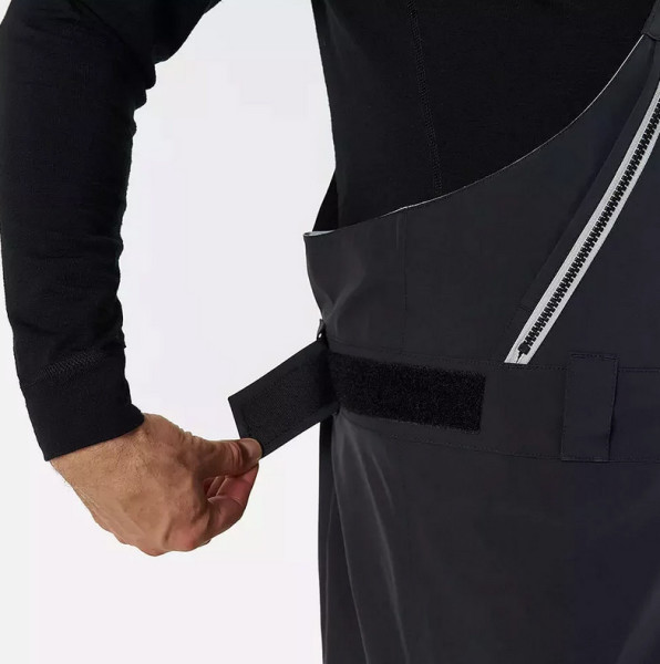 La salopette est dotée de quatre poches poitrine – deux zippées et deux doublées polaire pour garder les mains au chaud – ainsi que d'une grande poche cuisse avec rabat Velcro et ouverture dédiée pour un accès rapide aux outils.