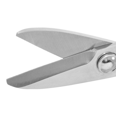 Ce ciseau de 5,5" (13.5cm) est dotée de grandes poignées à motif écailles Cuda antidérapantes pour plus de confort et de contrôle, ainsi que des lames en titane en acier inoxydable pour plus de durabilité et de résistance à la corrosion.