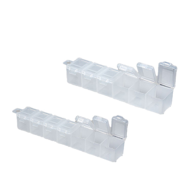 Les 2 boites ont la même longueur : la version 6 cases possède des compartiments plus gros que la version 7 cases.