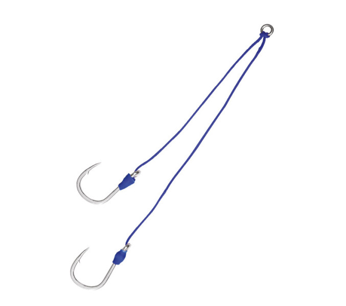 Montage assisté réalisé avec 2 hameçons BKK N°2/0 et un anneau soudé solide pour une installation facile sur un lest métallique, ils peuvent également être utilisés dans la technique verticale de la traine lente.