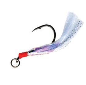 Hameçon à jig FLASHMER. C'est un hameçon simple N°7/0 black nickel, forgé, droit à œillet destiner à armer les cuillers, jigs, leurres. Fibres mylar et filaments torsadés aux reflets arc-en-ciel pour renforcer l'attractivité du leurre.