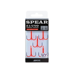 Le BKK Spear-21 UVO est un hameçon triple doté d'un revêtement Orange Ultra violet (UV) de BKK qui offre un contraste et une visibilité élevés, en reflétant la lumière UV présente dans la colonne d'eau.