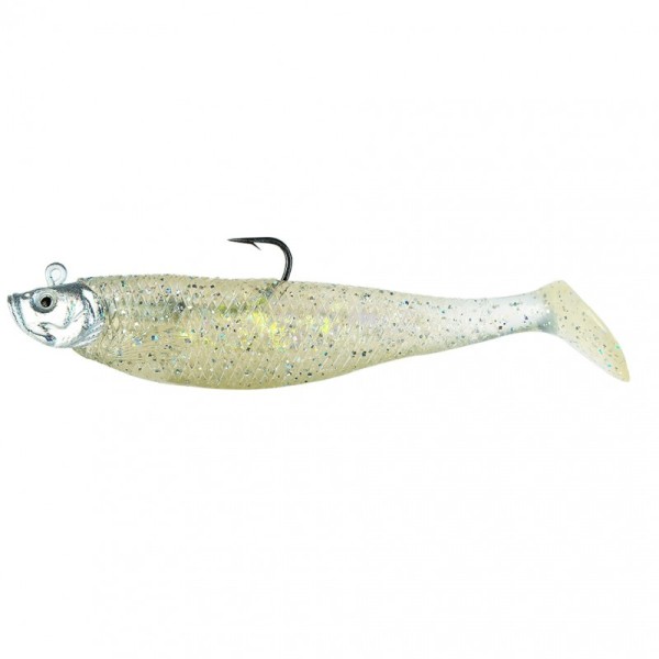 Mega shad FLASHMER ses atouts : Coloris holographiques avec inserts à reflets irisés. Étonnants de réalisme. Silicone et peinture résistants. Monté sur tête holographique SAFETY avec croc anti-glisse