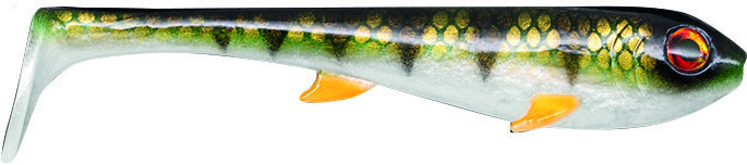Sa large queue de shad inclinée à 80°retient bien l'eau produisant les fortes vibrations capables de décider les brochets de plus d'un mètre à se déplacer.