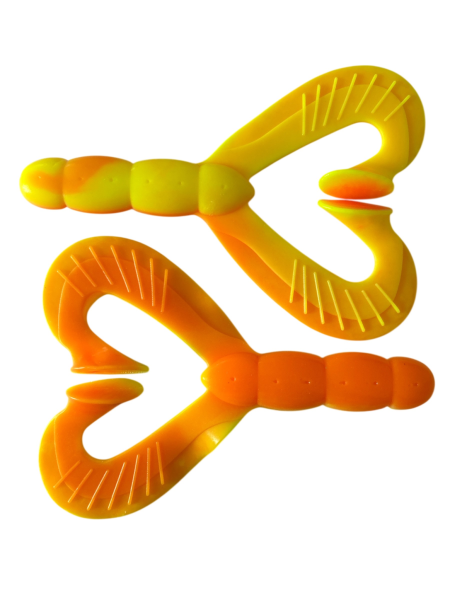 Le Rockvibe Manta est un leurre souple hybride entre l’Ax Craw et le Rockvibe Shad Reins avec un corps plus aplati et deux queues grub ultraplates terminées par des mini-paddles. Cette conception crée un mouvement fluide, ample et naturel entre chaque traction. Les rainures renforcent la solidité et accentuent les micro-vibrations, même à basse vitesse.