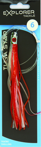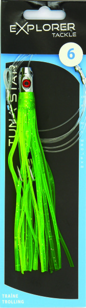 Les Tuna Star 6 EXPLORER TACKLE sont des jets siffleurs sont prémontés avec un bas de ligne de 120 cm dont la boucle d'attache est sleevée et ils sont déjà armés d'un hameçon double fort de fer au piquant redoutable.