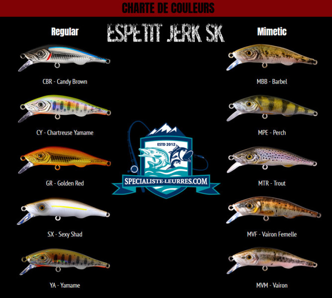 Conçu pour être complémentaire à son cousin l'Espetit Jerk SP, il est plus adapté pour la pêche dans les zones à fort courant et peut être présenté à la profondeur d’eau désirée puisqu’il est coulant.