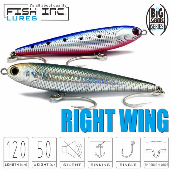 Le Right Wing est un leurre coulant, mince et rapide avec une action erratique. Il peut être utilisé pour pêcher à différentes profondeurs en ajustant le temps de descente.