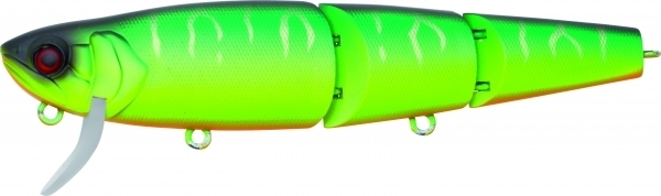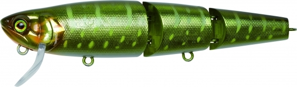 Cette version du Mikey « Jointed Swim Bait » articulée en trois parties, en fait un aimant à structure. Lors de sa récupération, sa nage en S est plus forte et plus prononcée et rend plus efficace le miroitement des flancs tout en émettant une sonorité hors du commun.