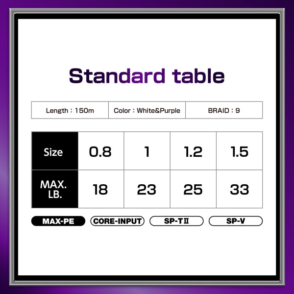 - PE 1.5 - Résistance 33 lb - Longueur 150m - Coloris : Blanc avec marque violette