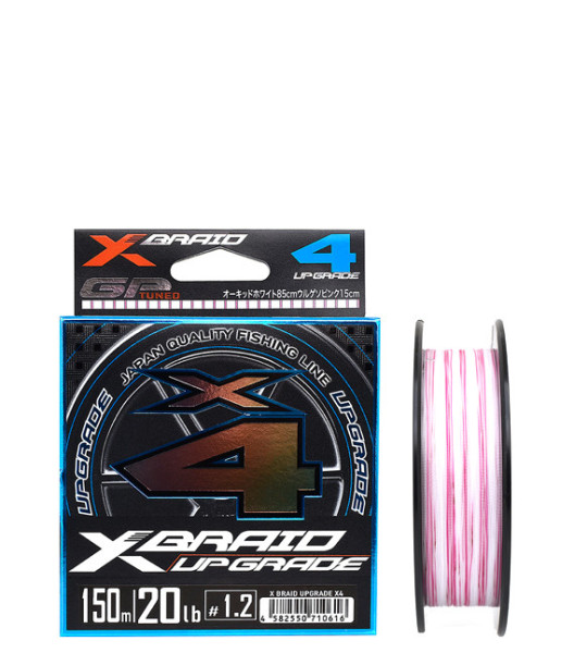 Upgrade X4 XBRAID : Ce modèle de tresse est en 4 brins, principalement grise, elle est marquée de rose chaque mètre pour avoir un repère visuel.